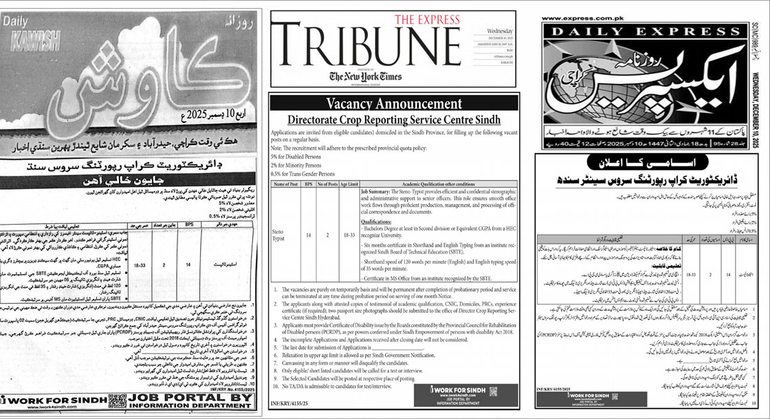 CAREER OPPORTUNITIES Crop Reporting Service Center – Agriculture Supply and Prices Department New Jobs 2025 SJP We hope you achieve your goals and land a well-paying job. We over at https://idealjobs.pk are working hard towards your better future, and we hope you will always support our platform. VACANT POSITIONS IMPORTANT INSTRUCTIONS & HOW TO APPLY