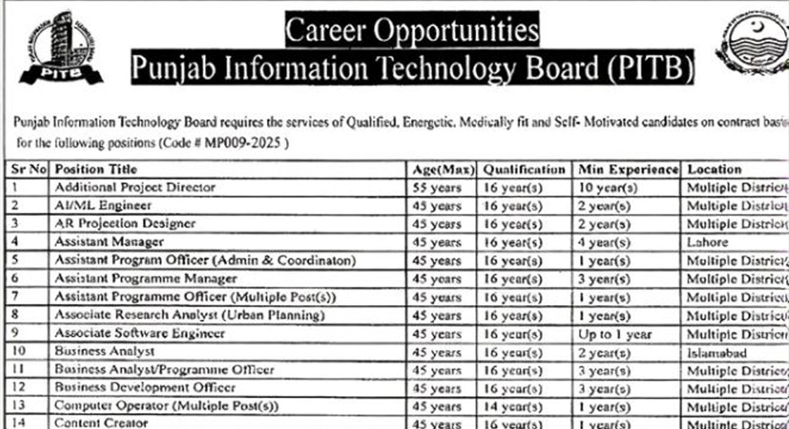 CAREER OPPORTUNITIES Punjab Information Technology Board PITB New Jobs December 2025 We hope you achieve your goals and land a well-paying job. We over at https://idealjobs.pk are working hard towards your better future, and we hope you will always support our platform. VACANT POSITIONS IMPORTANT INSTRUCTIONS & HOW TO APPLY