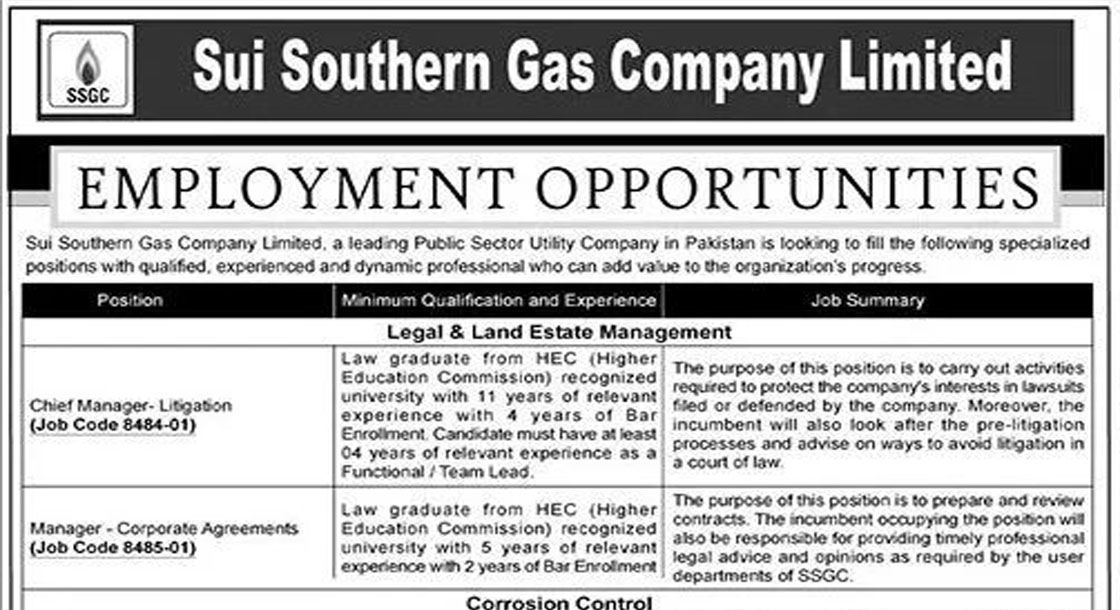 CAREER OPPORTUNITIES Sui Southern Gas Company SSGC New Jobs December 2025 We hope you achieve your goals and land a well-paying job. We over at https://idealjobs.pk are working hard towards your better future, and we hope you will always support our platform. VACANT POSITIONS IMPORTANT INSTRUCTIONS & HOW TO APPLY