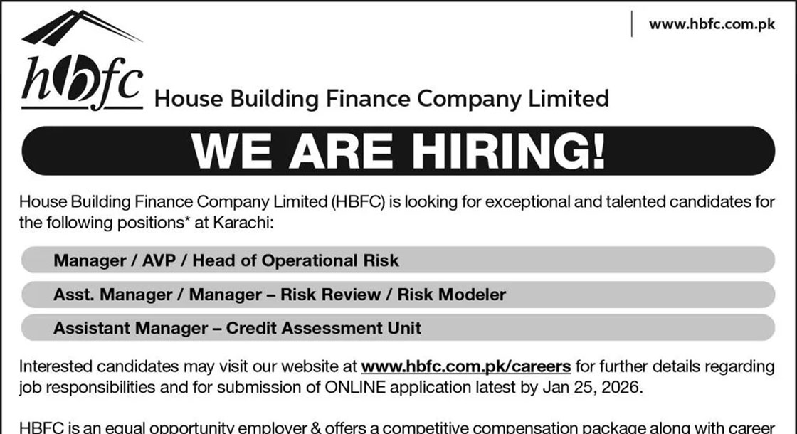 CAREER OPPORTUNITIES House Building Finance Company HBFC January Jobs 2026 If you are looking for finance sector jobs in Pakistan, here’s great news! The House Building Finance Company Limited (HBFC) has announced new job openings in Karachi 2026. HBFC is hiring talented, dynamic, and motivated professionals for multiple management-level positions. VACANT POSITIONS IMPORTANT INSTRUCTIONS & HOW TO APPLY