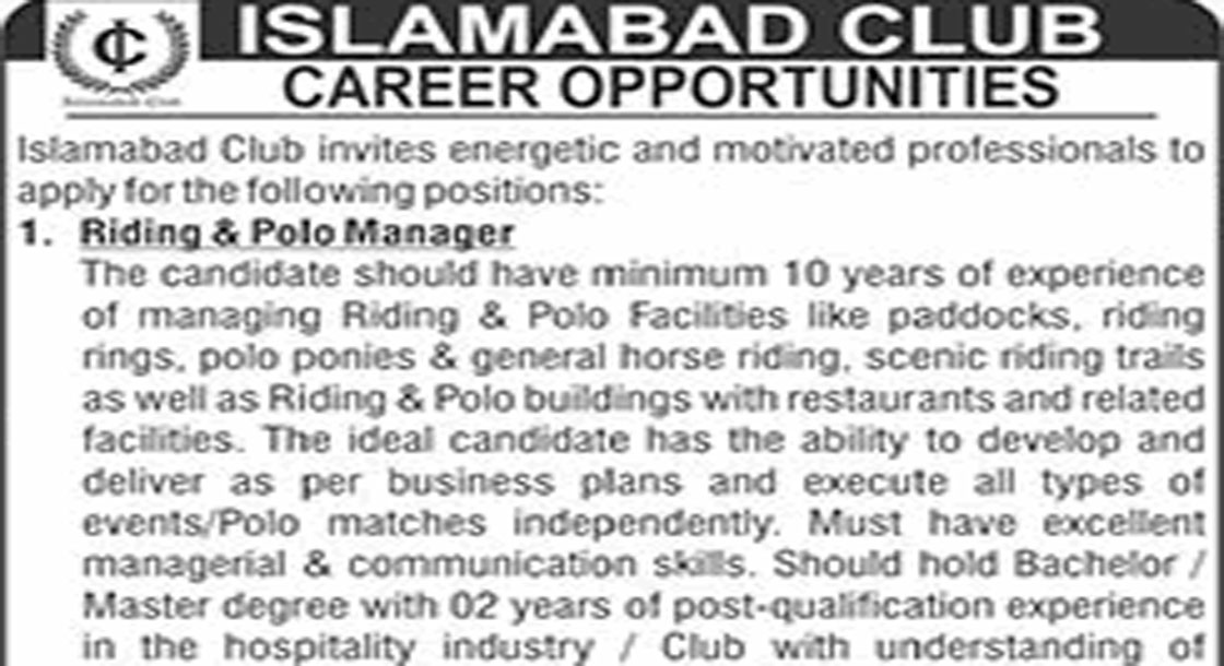 CAREER OPPORTUNITIES Islamabad Club Jobs February 2026 We hope you achieve your goals and land a well-paying job. We over at https://idealjobs.pk are working hard towards your better future, and we hope you will always support our platform. VACANT POSITIONS IMPORTANT INSTRUCTIONS & HOW TO APPLY