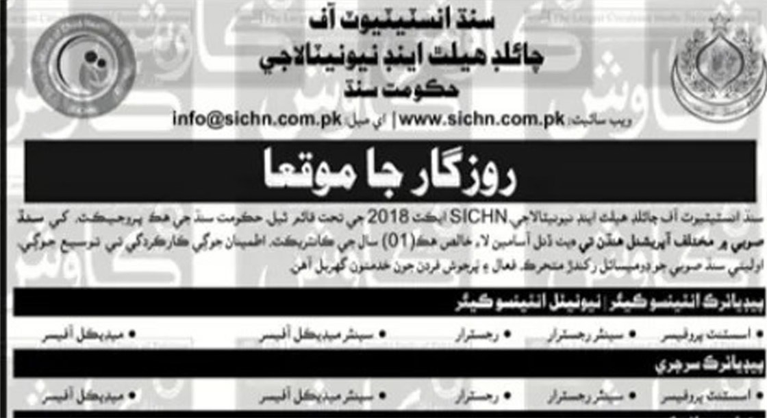 Sindh Institute of Child Health and Neonatology SICHN Jobs 2026