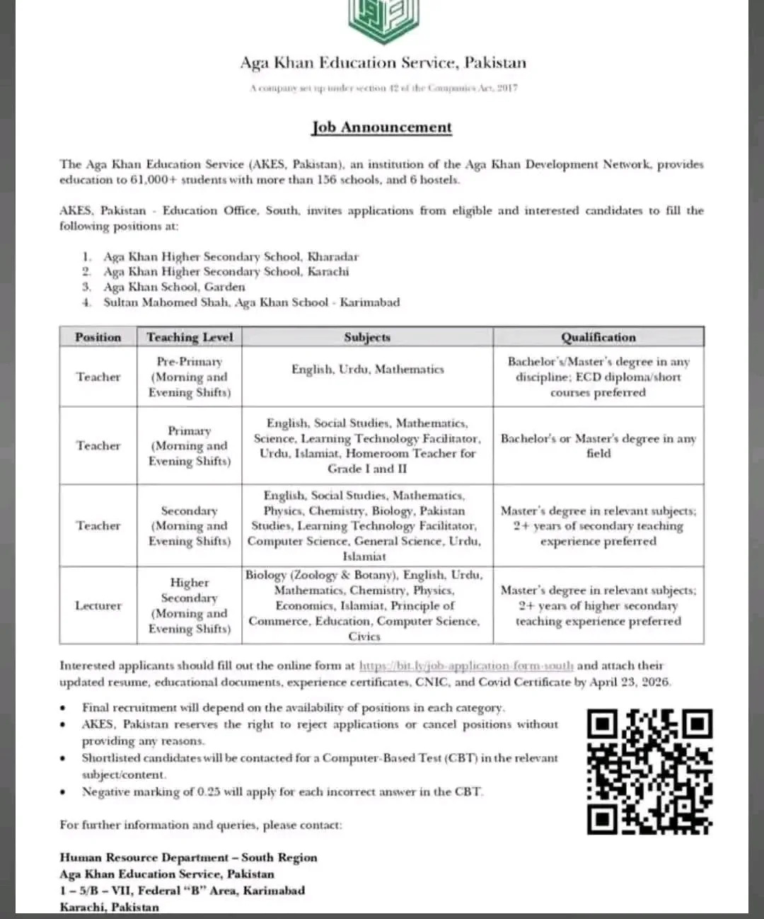 The Aga Khan Education Service, Pakistan (AKES,P), a leading institution of the Aga Khan Development Network (AKDN), has officially announced a wide range of job opportunities for educators in Karachi. With a network of over 156 schools serving 61,000+ students, AKES,P offers a prestigious platform for professional growth and community service