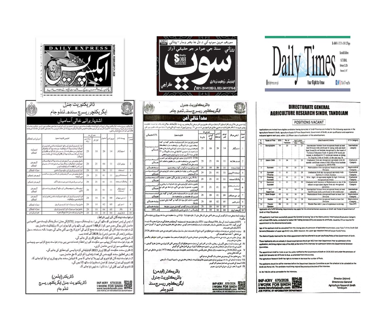 Agriculture Research Sindh New Jobs 2026 Sindh Job Portal