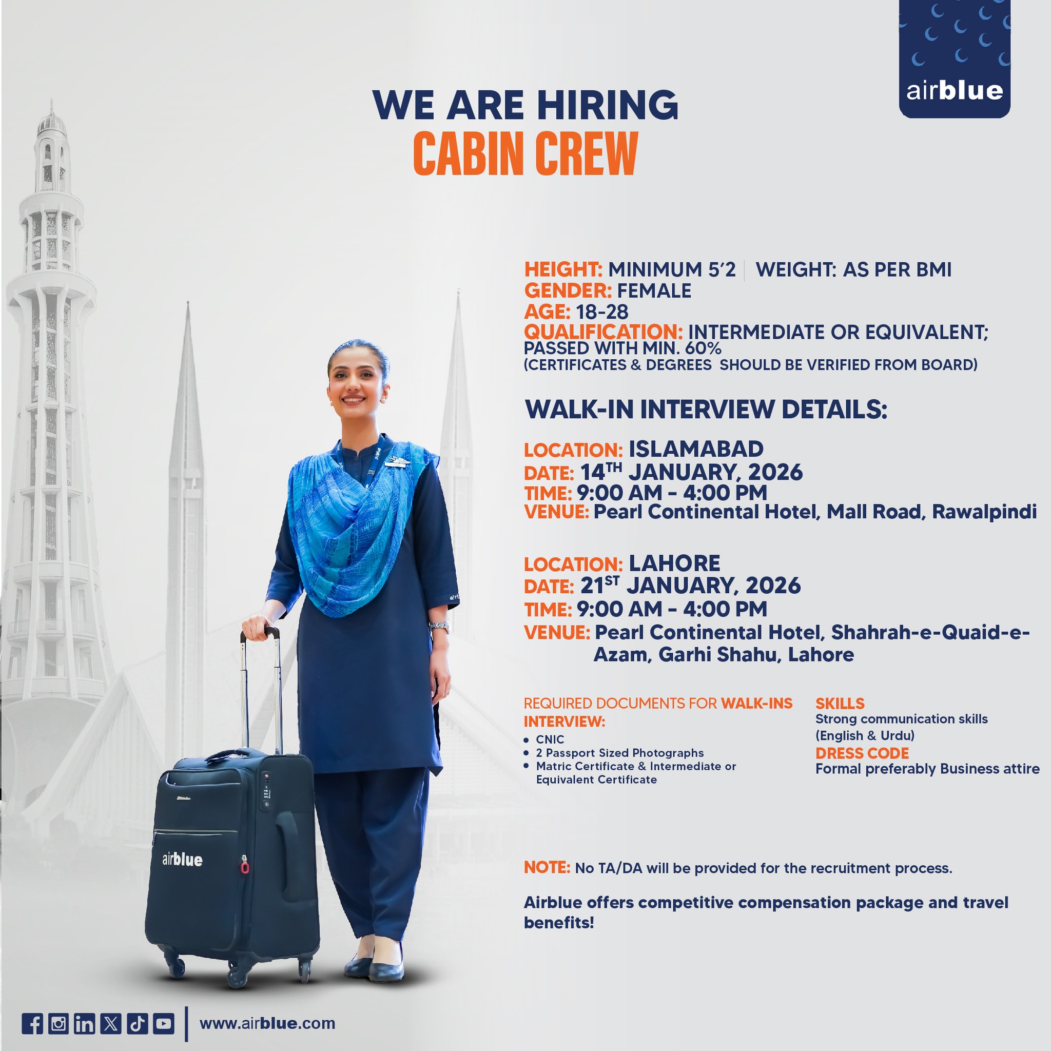 Airblue Jobs 2026 Female Cabin Crew