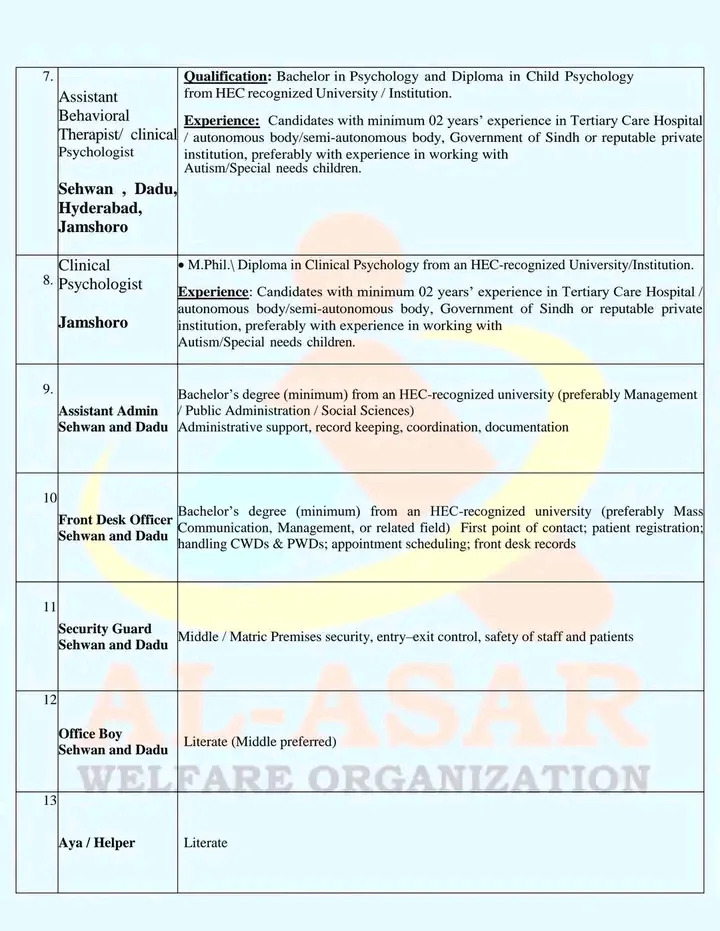 Al-Asar Welfare Organization Sindh Jobs 2026 NGO