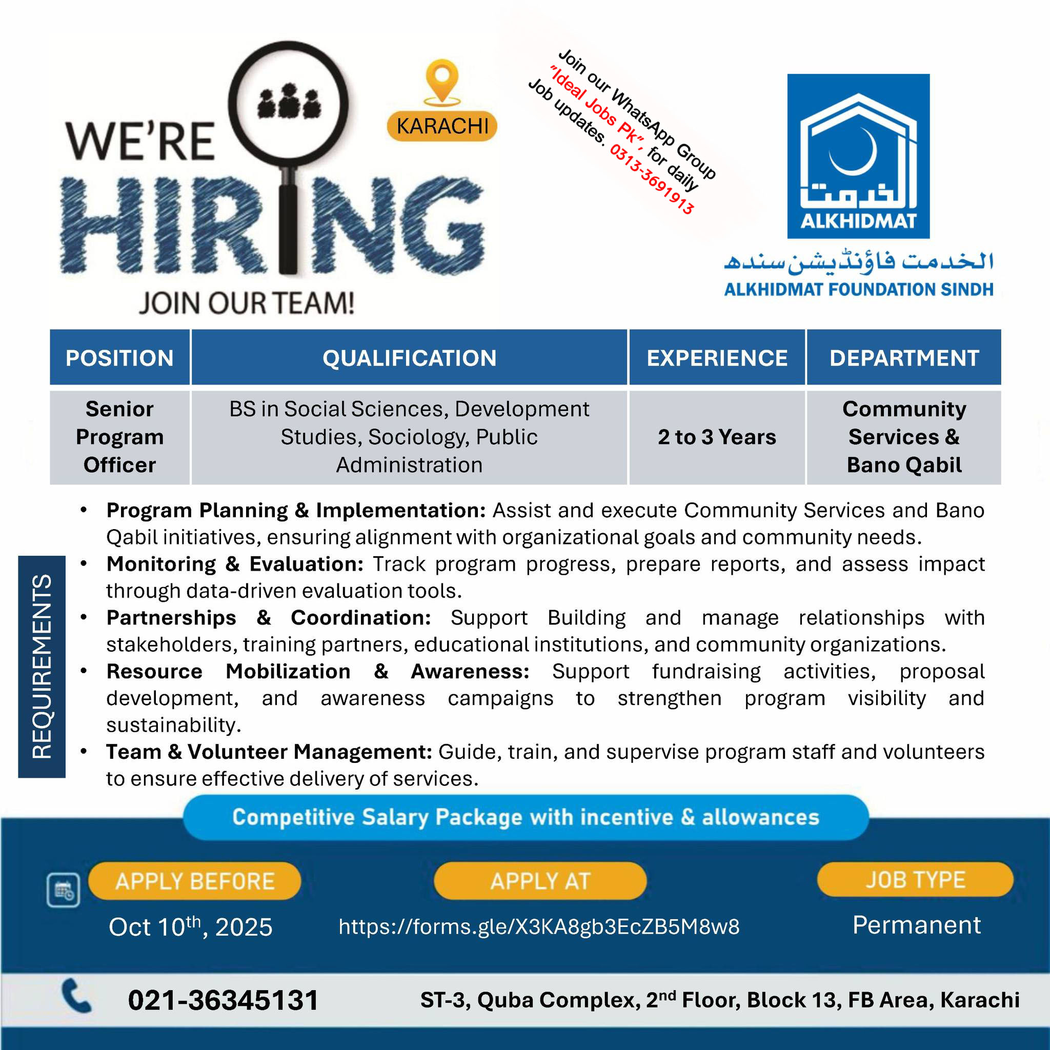 Alkhidmat Foundation New Jobs 2025. We hope you achieve your goals and land a well-paying job. We over at https://idealjobs.pk are working hard towards your better future, and we hope you will always support our platform.
