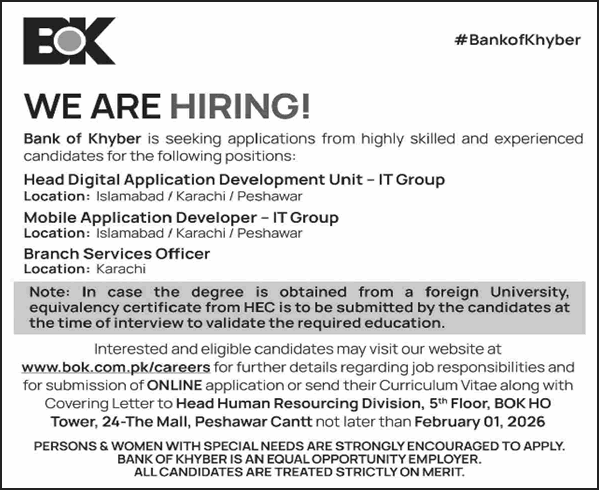 Bank of Khyber Jobs 2026 Apply Online We hope you achieve your goals and land a well-paying job. We over at https://idealjobs.pk are working hard towards your better future, and we hope you will always support our platform.