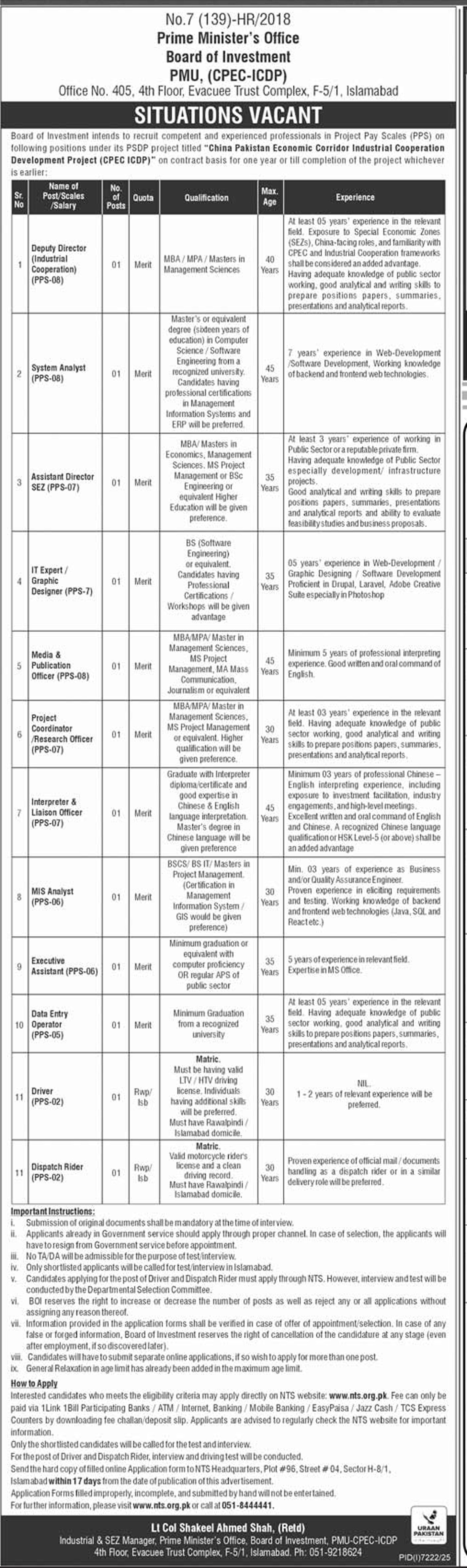 - Deadline: The application must reach the NTS office within 17 days from the date of publication of the advertisement.