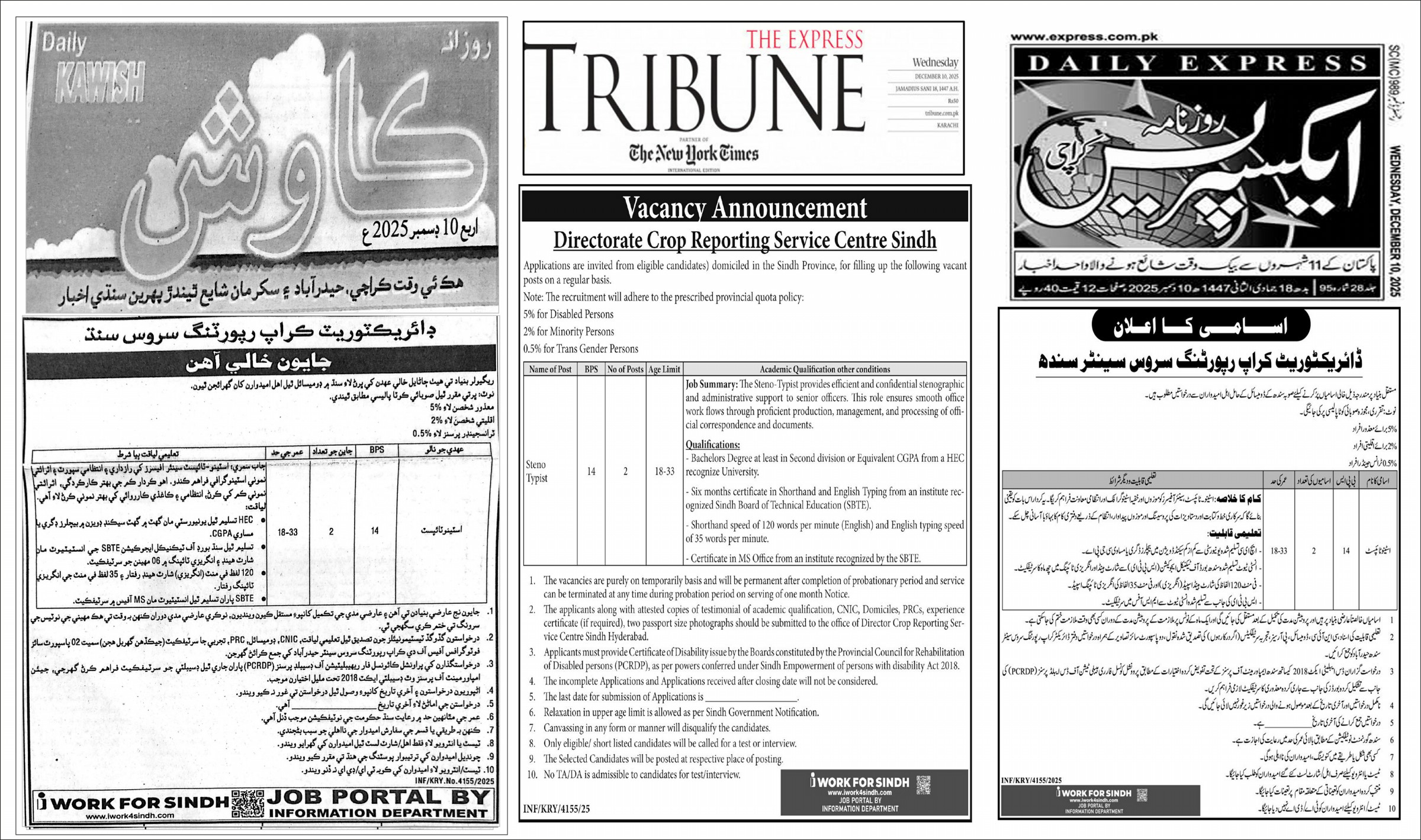 Crop Reporting Service Center Jobs 2025 Sindh Job Portal