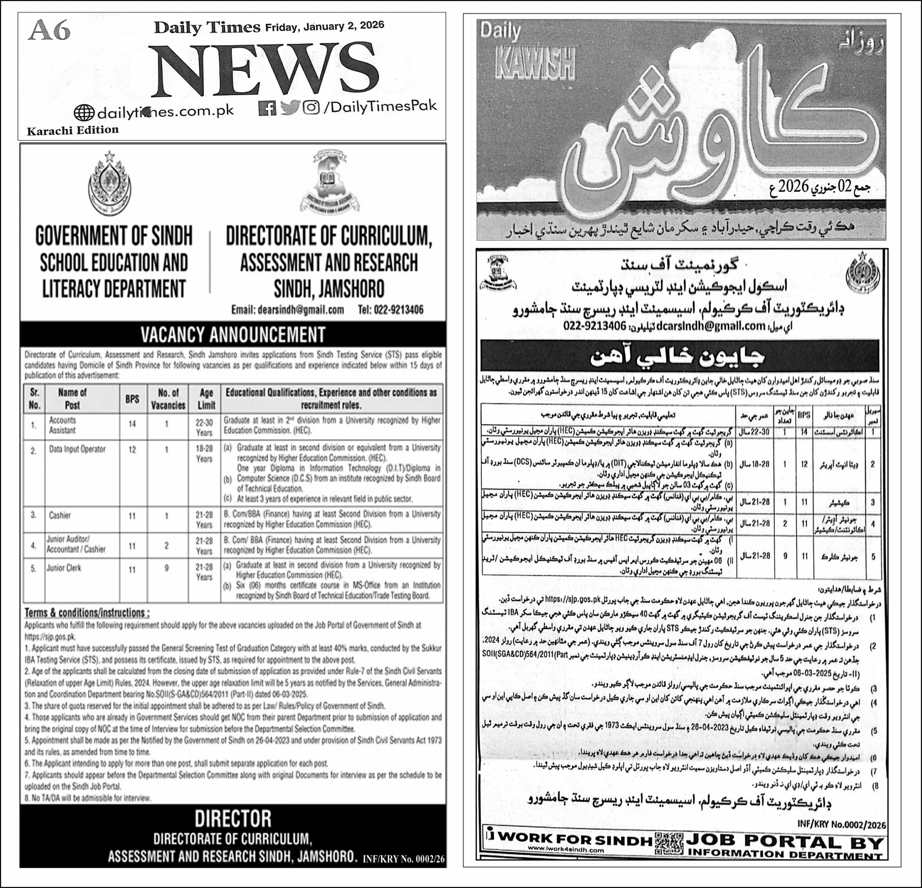 The Government of Sindh has officially announced new education department jobs 2026 under the School Education and Literacy Department Sindh. These vacancies have been published by the Directorate of Curriculum, Assessment and Research (DCAR) Sindh Jamshoro, offering excellent career opportunities for qualified candidates across Sindh province.
