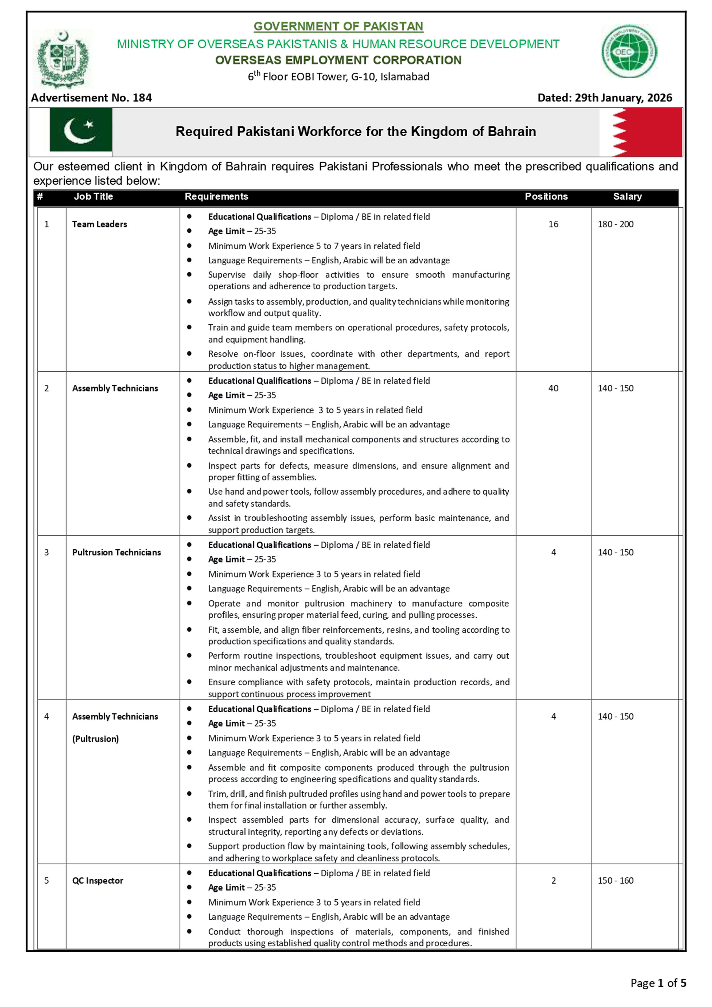Job Opportunities for Pakistani Professionals in the Kingdom of Bahrain 2026