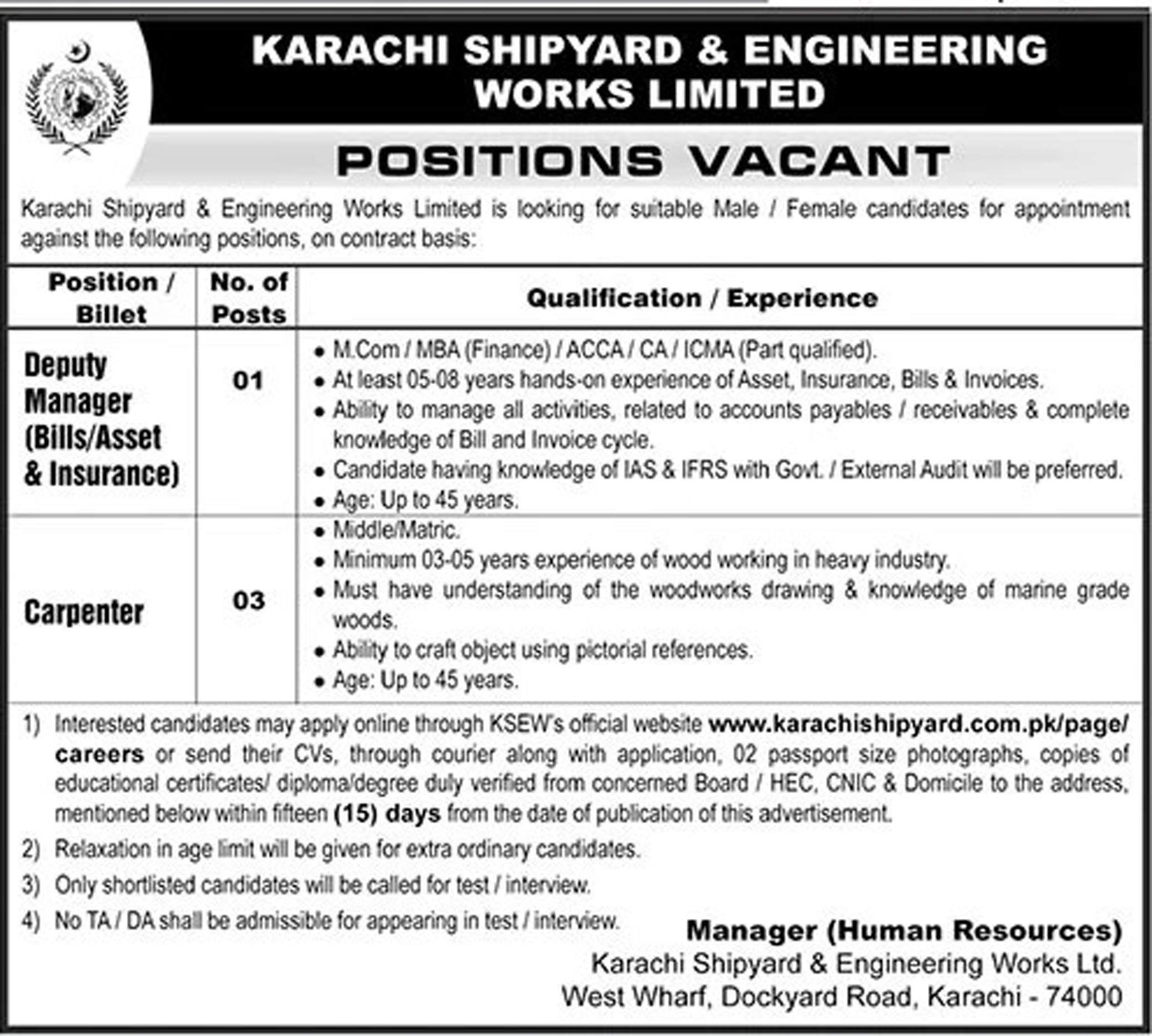 - visit the official KSEW careers website at: www.karachishipyard.com.pk/page/careers