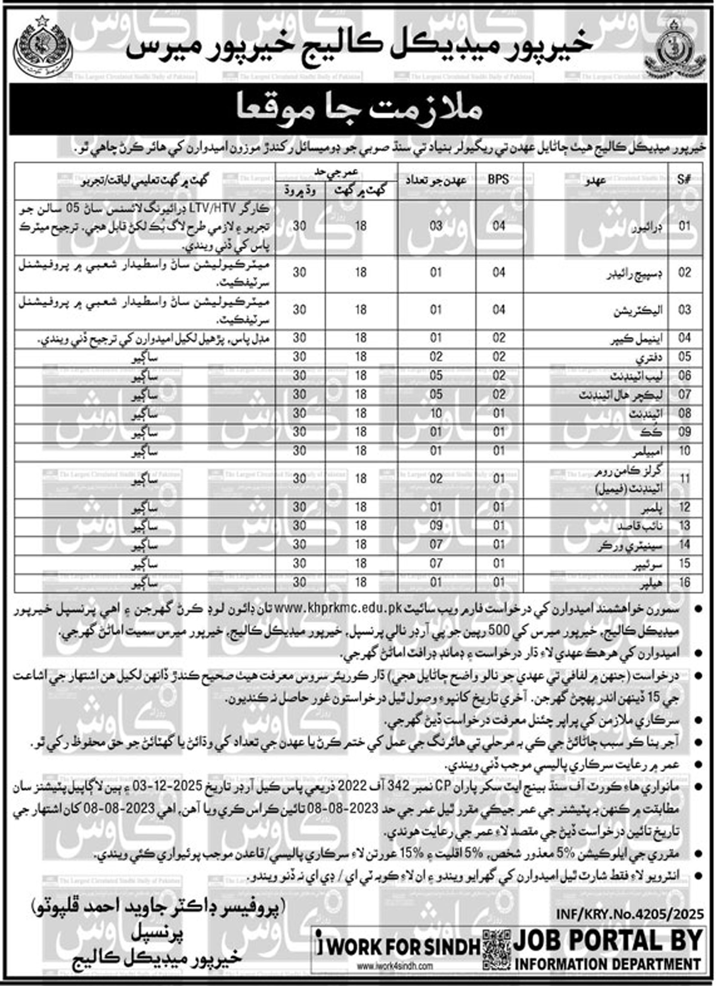 Khairpur Medical College Khairpur Mirus Jobs 2025