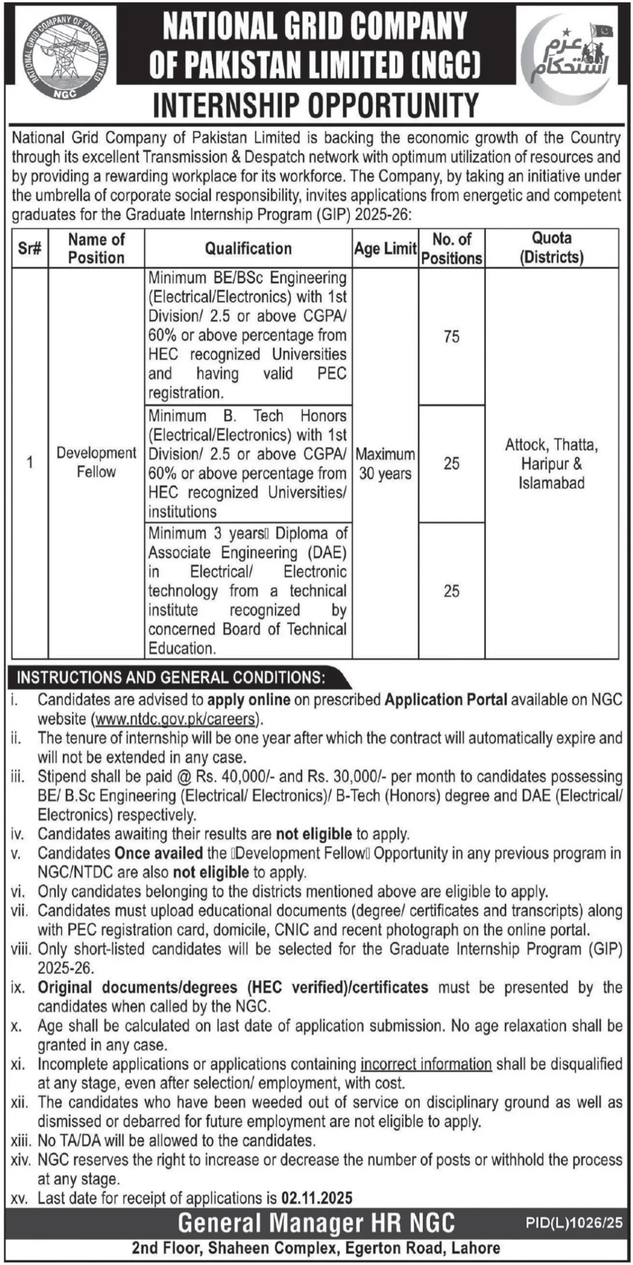 The National Grid Company of Pakistan Limited (NGC), a vital organization backing the country’s economic growth through its extensive Transmission & Despatch network, has announced a major internship opportunity for young, energetic, and competent graduates. Under its corporate social responsibility initiative, NGC is inviting applications for its prestigious Graduate Internship Program (GIP) for the 2025-26 session. This program is a golden ticket for aspiring engineers and technicians to gain invaluable hands-on experience in the power sector, one of Pakistan’s most critical industries.