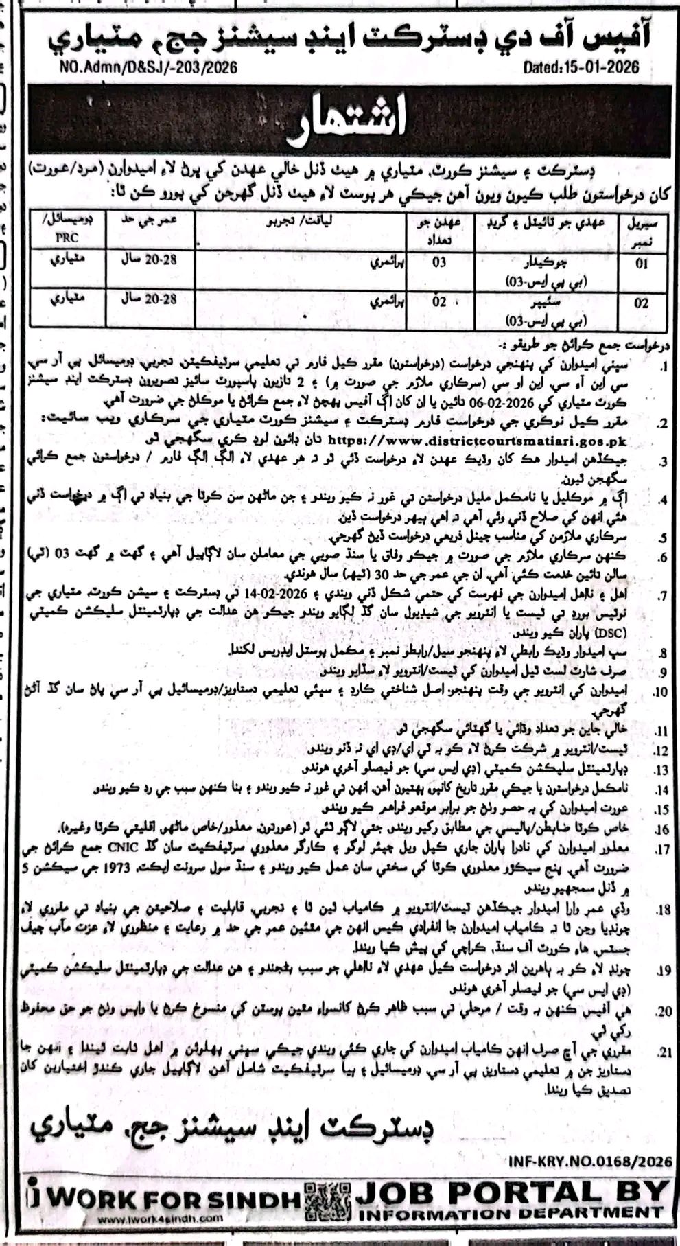 - Download the official application form from the District Courts Matiari website