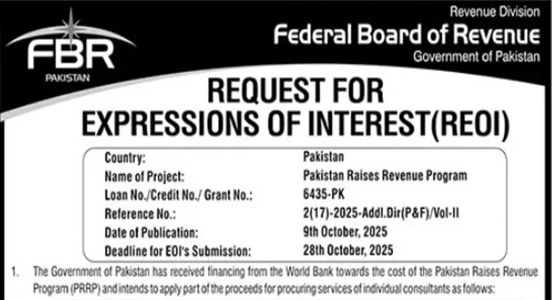 Federal Board Of Revenue FBR Islamabad October Jobs 2025