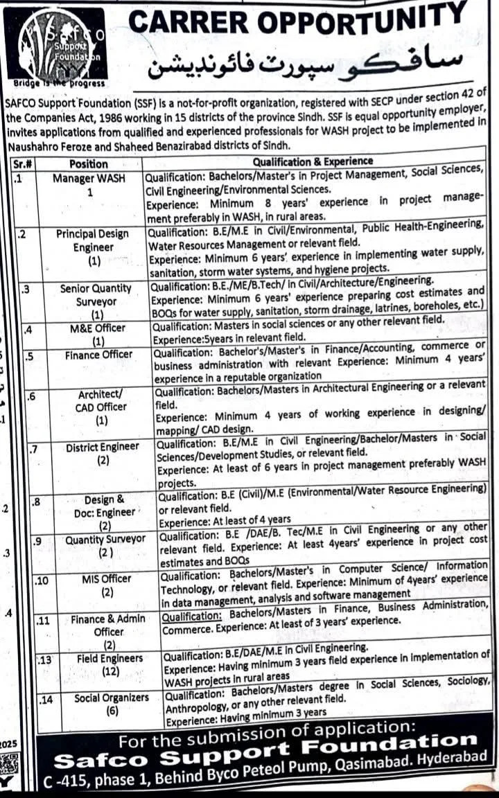 SAFCO Support Foundation SSF WASH New Jobs 2025