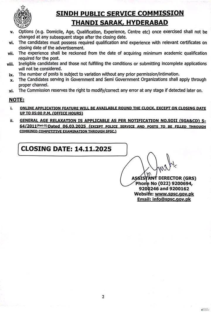 • Closing Date: The deadline for online applications is November 14, 2025. The online application feature will be available 24/7, but will be closed at 05:00 PM (Office Hours) on the final day.