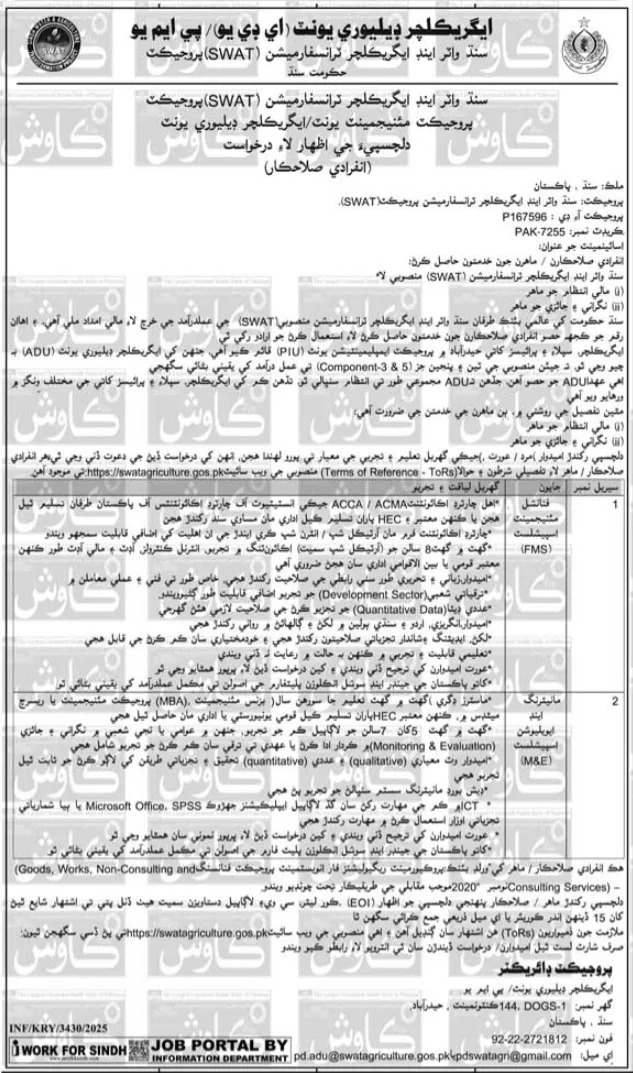 Sindh Water And Agriculture Transformation SWAT Project Sindh Jobs 2025