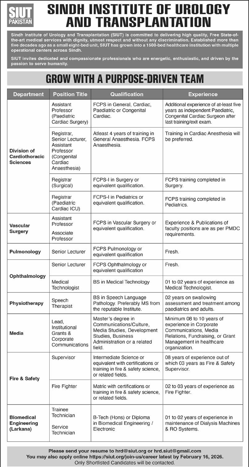 SIUT Hospital Karachi Jobs February 2026 Apply Online