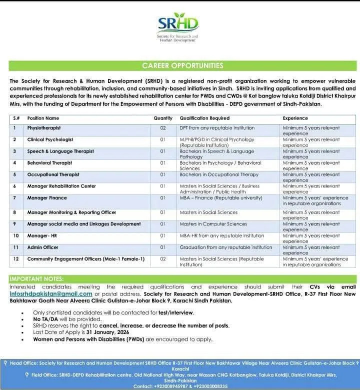 Society for Research & Human Development SRHD Jobs Sindh 2026   We hope you achieve your goals and land a well-paying job. We over at https://idealjobs.pk are working hard towards your better future, and we hope you will always support our platform.