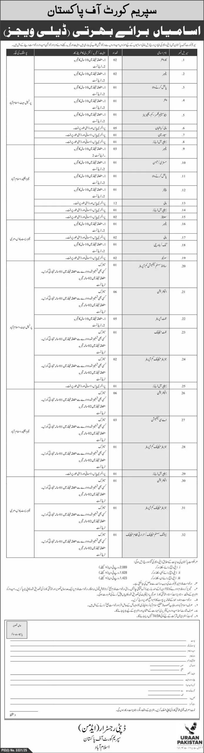 Supreme Court Of Pakistan SCP New Jobs 2025 The Supreme Court of Pakistan Jobs 2025 have been officially announced for multiple positions on a daily wages basis. Interested male and female candidates from across Pakistan are invited to apply for various posts. These latest job opportunities in the Supreme Court Islamabad provide a golden chance to serve in one of the most prestigious institutions of Pakistan.