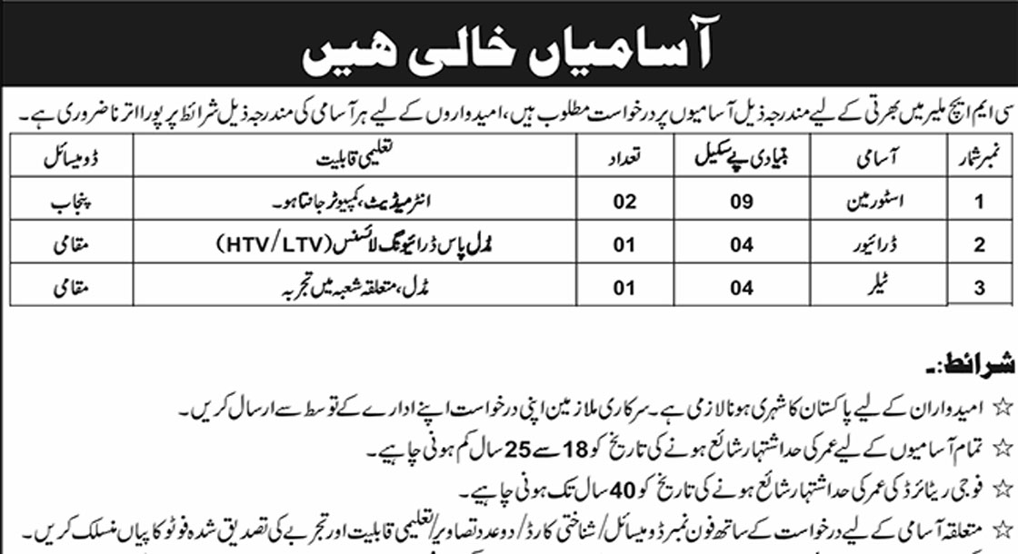 Tag Archives: CMH Malir Cantt Karachi 2025 Jobs