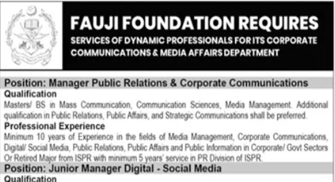 CAREER OPPORTUNITIES Fauji Foundation Jobs New 2025 This is an excellent opportunity for skilled communicators, marketers, and creative professionals to join one of Pakistan’s largest and most reputable welfare and industrial conglomerates. The foundation is offering attractive salary packages and a wide range of opportunities for professional growth. The deadline to apply for all positions… Read More »