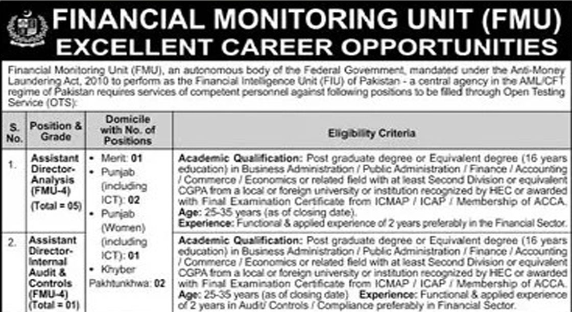 CAREER OPPORTUNITIES Financial Monitoring Unit FMU New Jobs 2025 FMU Jobs 2025, Financial Monitoring Unit Careers, Government Jobs in Pakistan, Anti-Money Laundering Jobs, Finance Jobs Pakistan, OTS FMU Jobs, Assistant Director Jobs Pakistan, Deputy Director Jobs FMU, Federal Government Jobs 2025 VACANT POSITIONS IMPORTANT INSTRUCTIONS & HOW TO APPLY