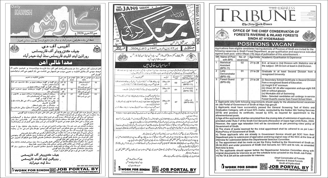 CAREER OPPORTUNITIES Forest And Wildlife Department Sindh Jobs 2026 Sindh Job Portal We hope you achieve your goals and land a well-paying job. We over at https://idealjobs.pk are working hard towards your better future, and we hope you will always support our platform. VACANT POSITIONS IMPORTANT INSTRUCTIONS & HOW TO APPLY