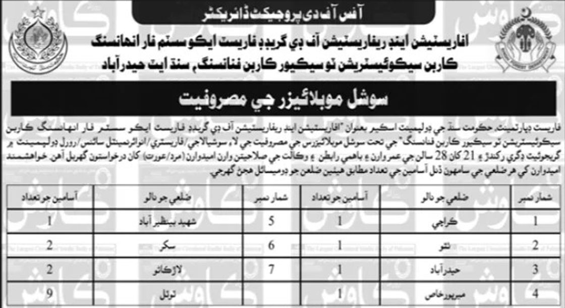 Forest Department Sindh Jobs 2026 Social Mobilizer
