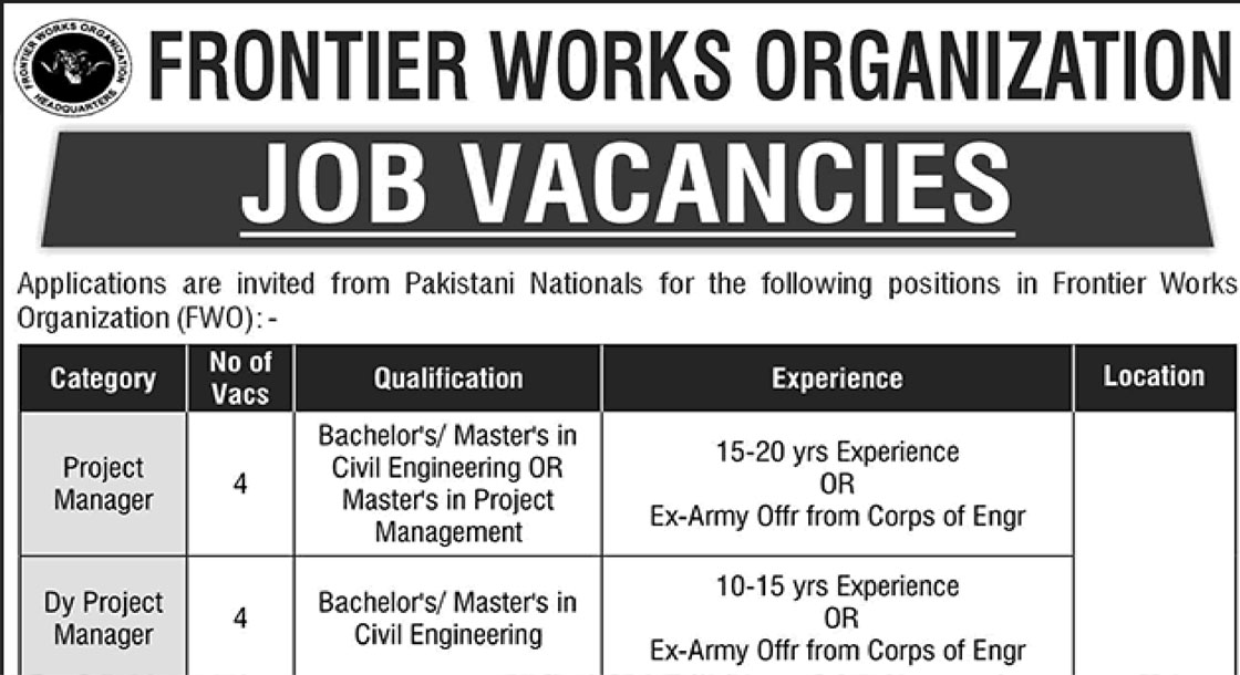Frontier Works Organization Jobs 2025 FWO Latest