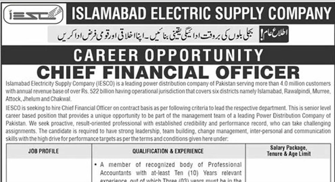 CAREER OPPORTUNITIES IESCO Jobs 2024 Islamabad Electric Supply Apply Online was announced in Islamabad through an online job portal www.iesco.com.pk. Applications are invited for the recruitment of suitable candidates to fill the following positions equivalent to BPS/ IPS-17 for one-year contract basis extendable on a performance and need basis. All quotas such as provincial, Former… Read More »
