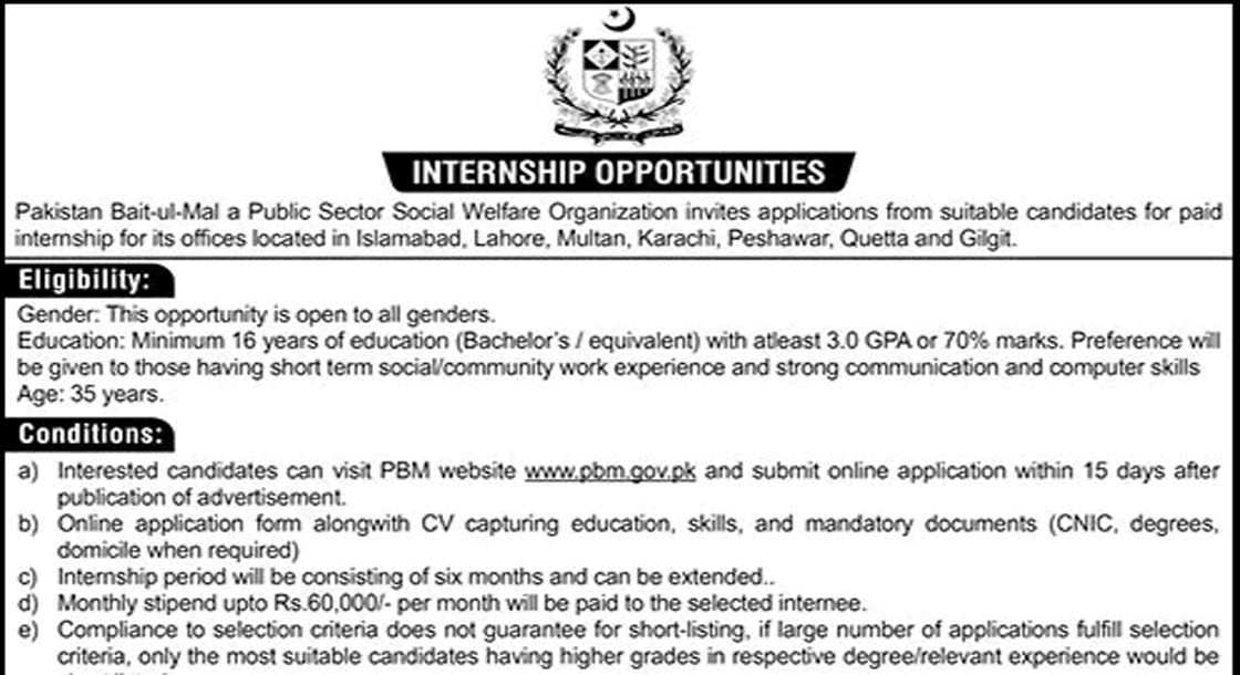 Pakistan Bait ul Mal Internships 2026 February Apply Online