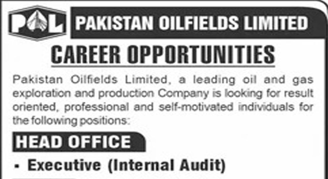 CAREER OPPORTUNITIES Pakistan Oilfields Limited Jobs 2023 October We hope you achieve your goals and land a well-paying job. VACANT POSITIONS Manager ( Internal Audit ) IMPORTANT INSTRUCTIONS & HOW TO APPLY For More Details View The Image.