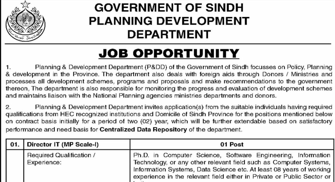 Planning And Development Department Sindh Jobs 2025