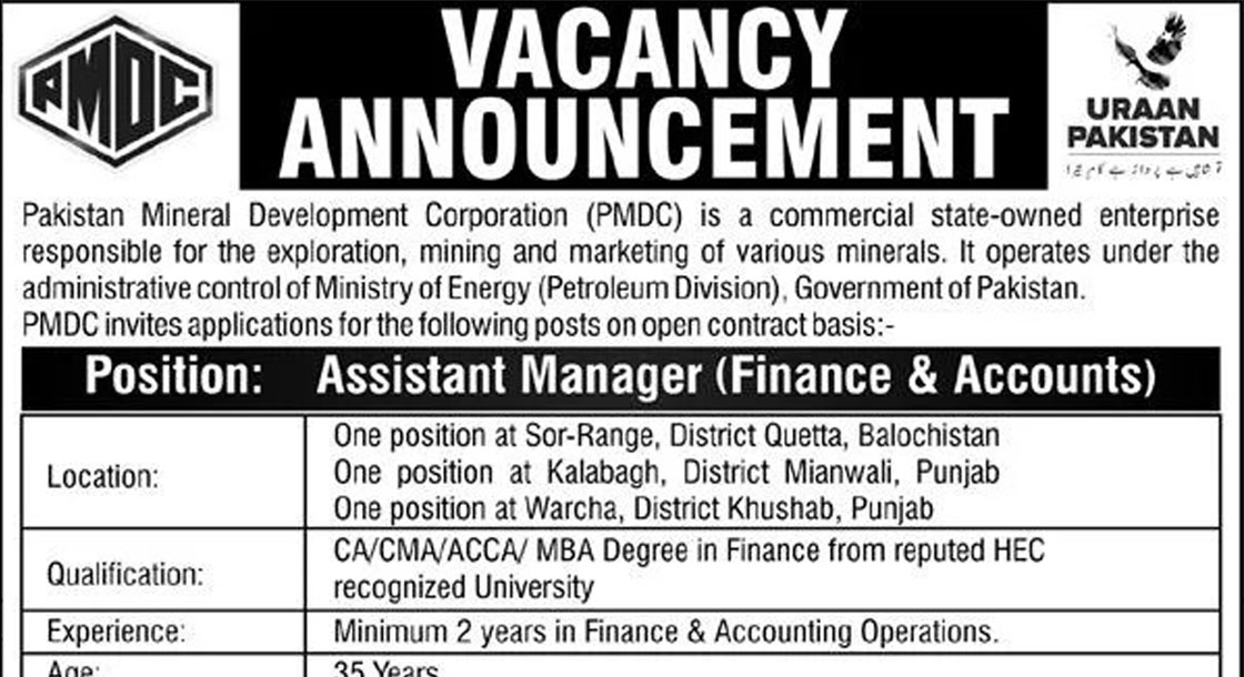 CAREER OPPORTUNITIES Pakistan Mineral Development Corporation PMDC Jobs 2025 The Pakistan Mineral Development Corporation (PMDC), a state-owned commercial enterprise operating under the administrative control of the Ministry of Energy (Petroleum Division), Government of Pakistan, has announced new career opportunities. Responsible for the exploration, mining, and marketing of a variety of minerals, PMDC is a key… Read More »
