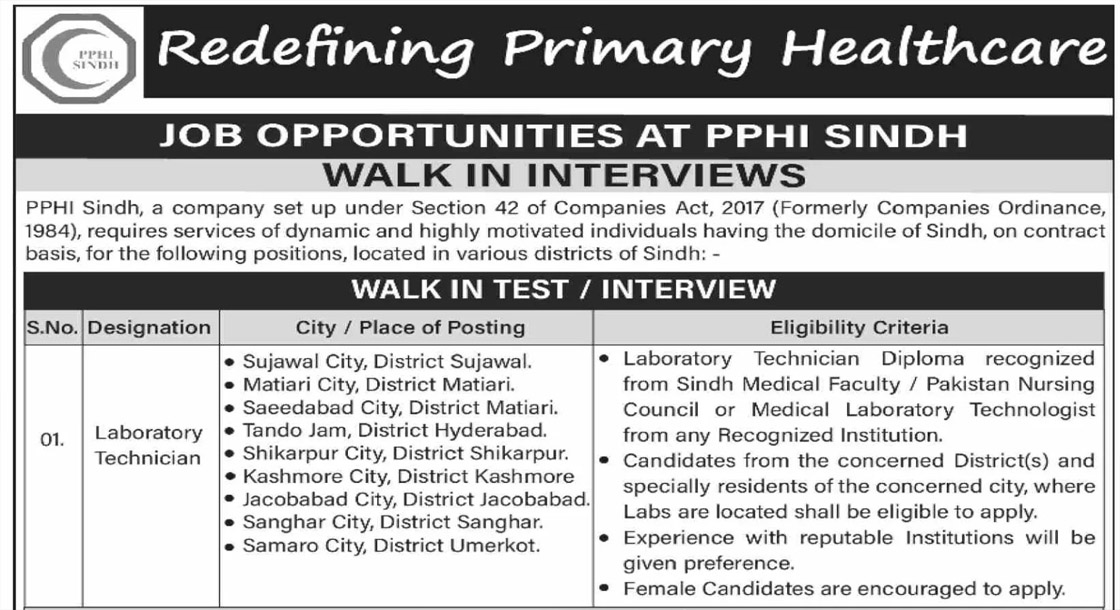 PPHI Sindh Jobs 2026 Walk-In Interviews