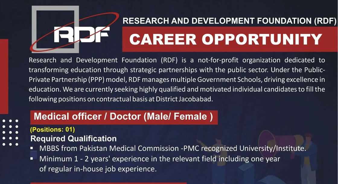 CAREER OPPORTUNITIES Research and Development Foundation RDF New Jobs 2025 The Research and Development Foundation (RDF), a not-for-profit organisation dedicated to transforming education through strategic partnerships with the public sector (under the Public-Private Partnership – PPP model), has announced vacancies for motivated individuals. RDF manages multiple Government Schools and is seeking highly qualified professionals to fill… Read More »