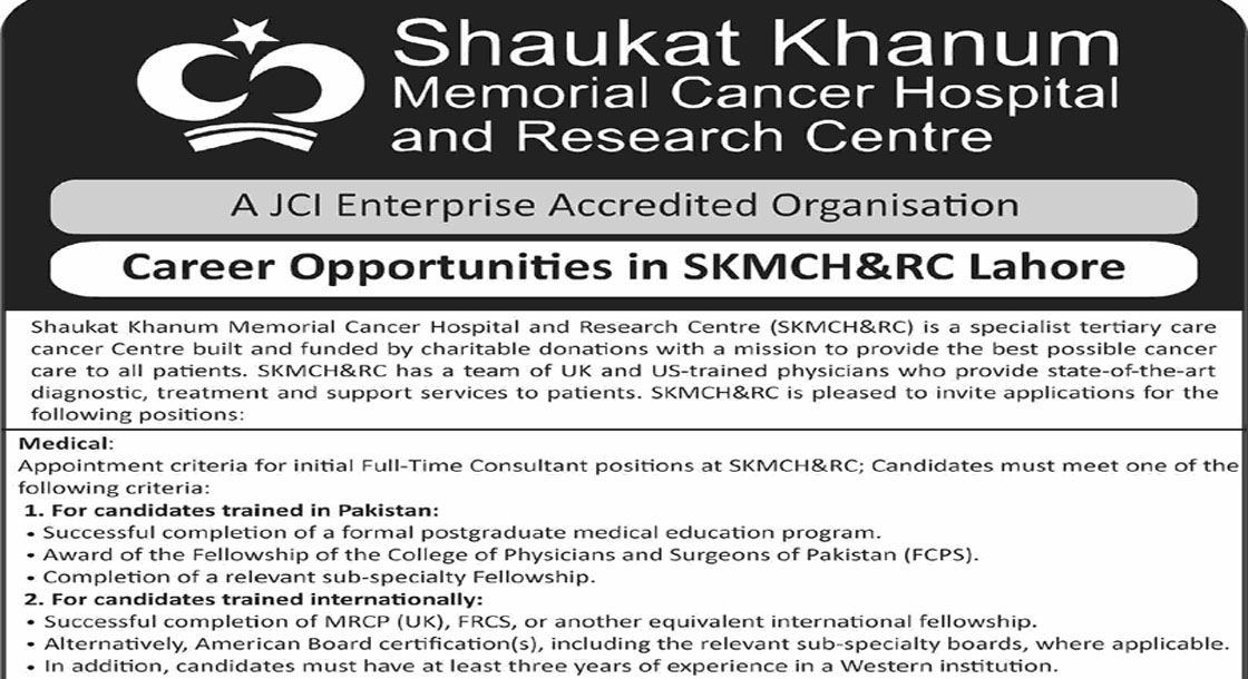 CAREER OPPORTUNITIES Shaukat Khanum Hospital Jobs March 2026 Apply Online We hope you achieve your goals and land a well-paying job. We over at https://idealjobs.pk are working hard towards your better future, and we hope you will always support our platform. VACANT POSITIONS IMPORTANT INSTRUCTIONS & HOW TO APPLY