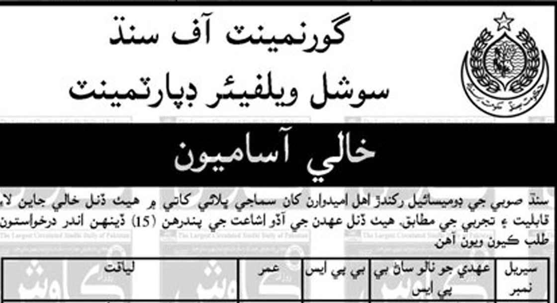 CAREER OPPORTUNITIES Social Welfare Department Government of Sindh New Jobs 2025 We hope you achieve your goals and land a well-paying job. We over at https://idealjobs.pk are working hard towards your better future, and we hope you will always support our platform. VACANT POSITIONS