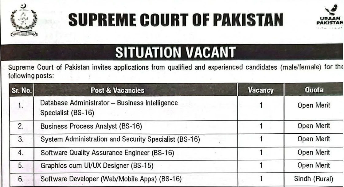 Tag Archives: Supreme Court Of Pakistan New Jobs 2025