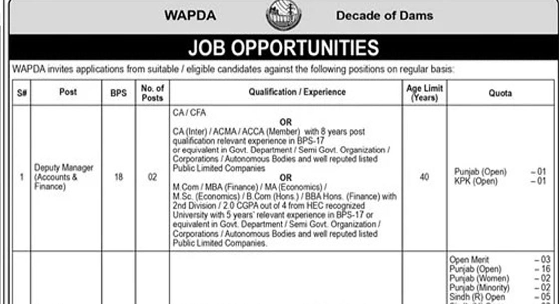CAREER OPPORTUNITIES Water and Power Development Authority New Jobs 2026 WAPDA We hope you achieve your goals and land a well-paying job. We over at https://idealjobs.pk are working hard towards your better future, and we hope you will always support our platform. VACANT POSITIONS IMPORTANT INSTRUCTIONS & HOW TO APPLY