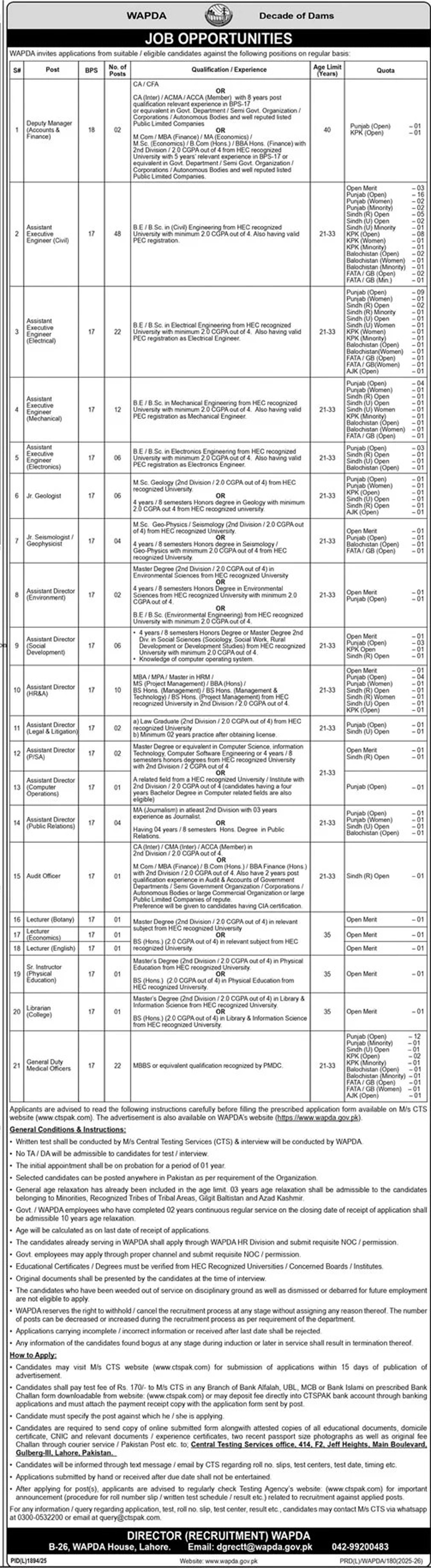 Water and Power Development Authority New Jobs 2026 WAPDA
