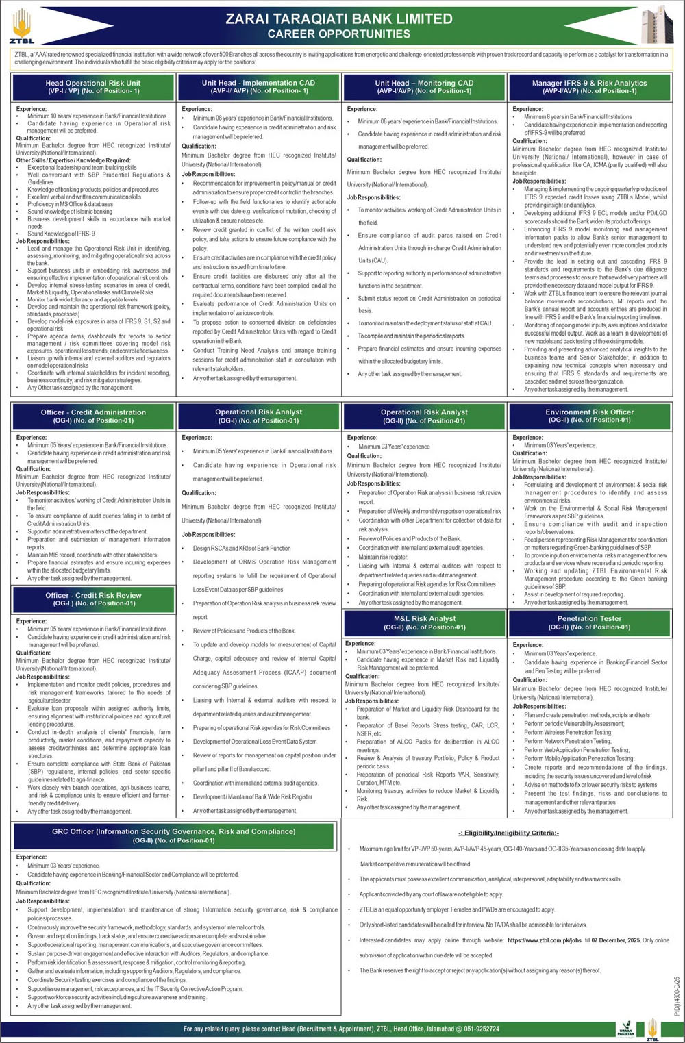 - You can apply online by visiting ZTBL’s official career portal at www.ztbl.com.pk/jobs and filling out the application form before the deadline.